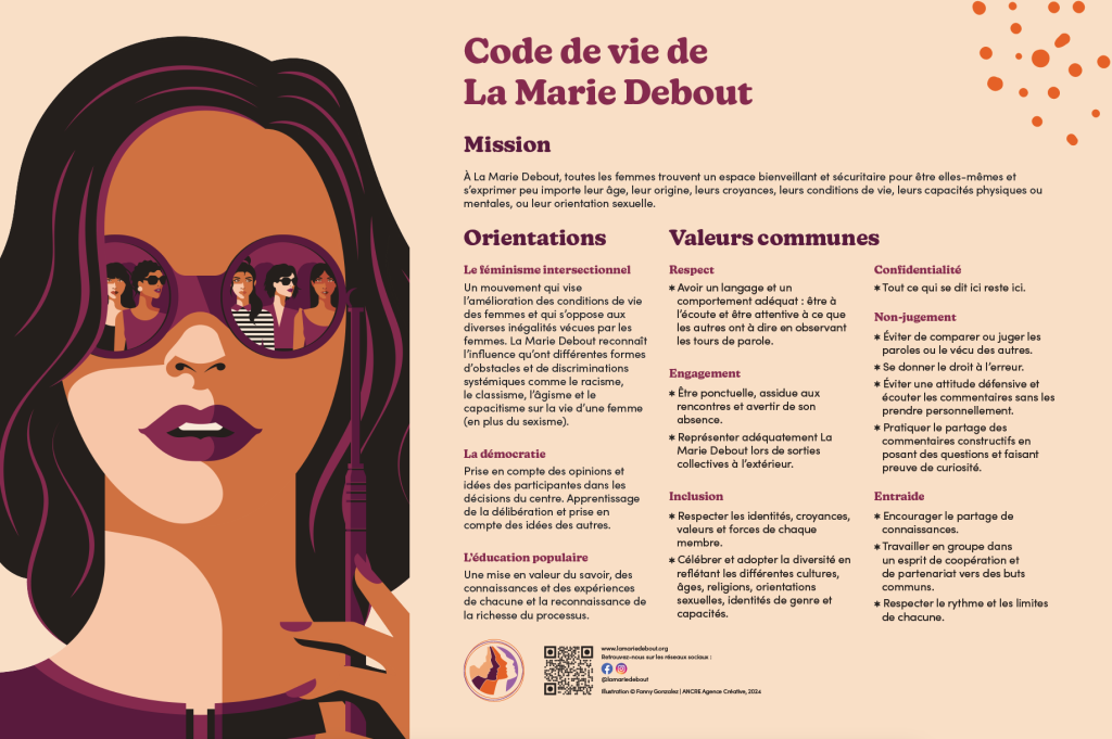 S’identifier comme femme et adhérer à la mission et aux valeurs du centre.